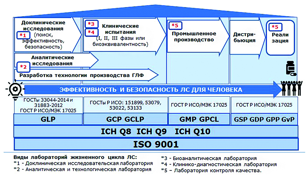 Текст. В создании ЛС и обеспечении их эффективности и безопасности участвует целый ряд видов лабораторий. На сегодняшний день существует большое количество нормативных документов, регламентирующих лабораторные исследования. Общим для всех видов лабораторий и нормативных документов является необходимость организации эффективной системы менеджмента качества (СМК) лабораторий жизненного цикла ЛС. Целью данного обзора является анализ подходов к регулированию качества лабораторных исследований отечественных ЛС и рассмотрение наиболее эффективной модели СМК, фундаментальной для всех видов лабораторий жизненного цикла ЛС.