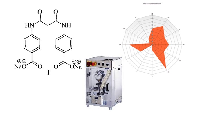 Результаты и обсуждение. Проведена оценка свойств субстанции и вспомогательных веществ в соответствии с методом SeDeM. Установлено, что субстанция 4,4’-(пропандиамидо)дибензоат натрия не пригоден для прямого прессования в связи с плохой сыпучестью и низкой прессуемостью. Гипромеллоза Methocel К4М обладала хорошей прессуемостью, однако не обладала достаточной сыпучестью. Другие исследуемые полимеры обладали удовлетворительными свойствами для осуществления технологии прямого прессования. Произведен расчет составов таблеточных смесей при помощи метода SeDeM, полученные таблеточные смеси обладали удовлетворительными технологическими характеристиками для получения таблеток путем прямого прессования. Полученные в результате эксперимента таблетки также соответствовали фармакопейным требованиям.