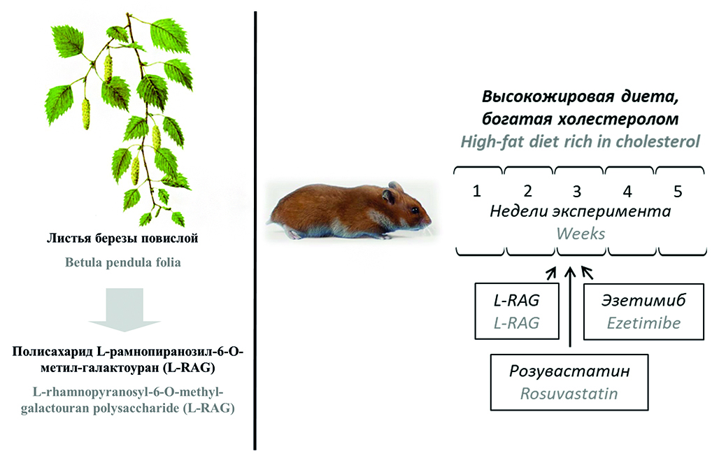 Введение. Во многих случаях для терапии дислипидемий требуется тщательно подобранная комбинированная терапия гиполипидемическими лекарственными препаратами, в том числе с использованием секвестрантов желчных кислот. Перспективным соединением является L-рамнопиранозил-6-О-метил-галактуронан (L-RAG) – полисахарид, получаемый из листьев березы повислой (Betula pendula L.).