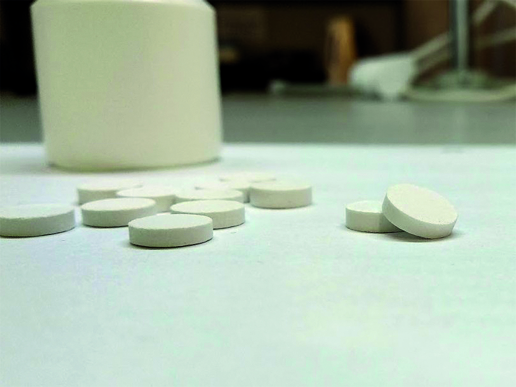Материалы и методы. Изучение технологических свойств образцов таблеток проводили по методикам Государственной Фармакопеи XIV издания с помощью таблетпресса ПГР-10 (ООО «ЛабТулс», Россия), тестера твердости таблеток TBH 125 TDP (ERWEKA GmbH, Германия), тестера распадаемости таблеток ZT 322 m (ERWEKA GmbH, Германия), тестера истираемости TAR 220 (ERWEKA GmbH, Германия).