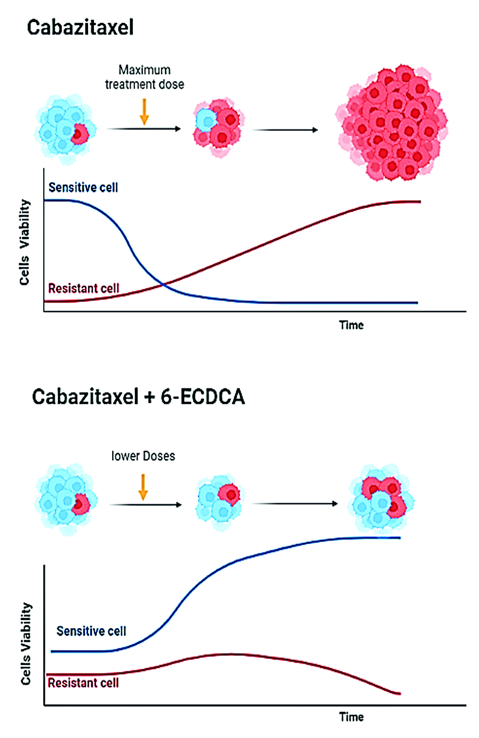 Introduction. Chemotherapy with Cabazitaxel (CBZ) is a typical first-line treatment option for naïive castration-resistant prostate cancer resistant to docetaxel. On the other hand, Cabazitaxel's therapeutic success is constrained by chemoresistance and side effects.