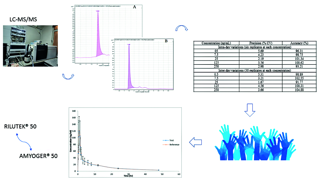 Conclusion. The validated method was applied in Iranian healthy subjects under fasting condition with a 50 mg riluzole tablet successfully.