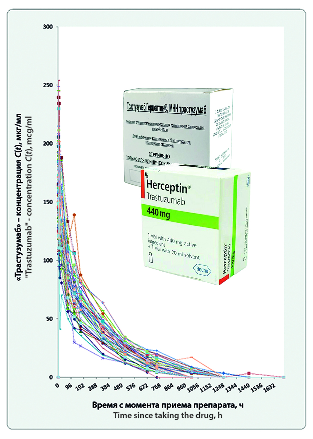 Цель. Целью работы было проведение аналитической части двойного слепого рандомизированного сравнительного клинического исследования фармакокинетики и безопасности препаратов трастузумаба с участием здоровых добровольцев с дальнейшей оценкой биоаналогичности препаратов «Трастузумаб» (ООО «Мабскейл», Россия) и «Герцептин®» (F. Hoffmann-La Roche Ltd., Швейцария).