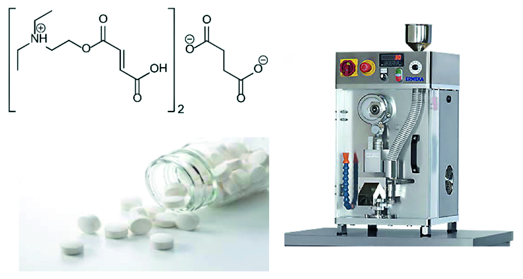 Материалы и методы. Объектами исследования являлись два вещества, пространственные изомеры молекулы, производного ДЭАЭ, обладающего нейропротекторным, антиастеническим и антиоксидантным действием. Изучение свойств АФС и полученных таблеток было проведено в соответствии с требованиями Государственной фармакопеи Российской Федерации (ГФ РФ) XIV изд., Фармакопеи Евразийского экономического союза, а также Европейской фармакопеи 9.0 изд. В качестве вспомогательных веществ использованы вещества, обладающие не истекшим на момент исследования сроком годности, а также разрешенные для медицинского применения.