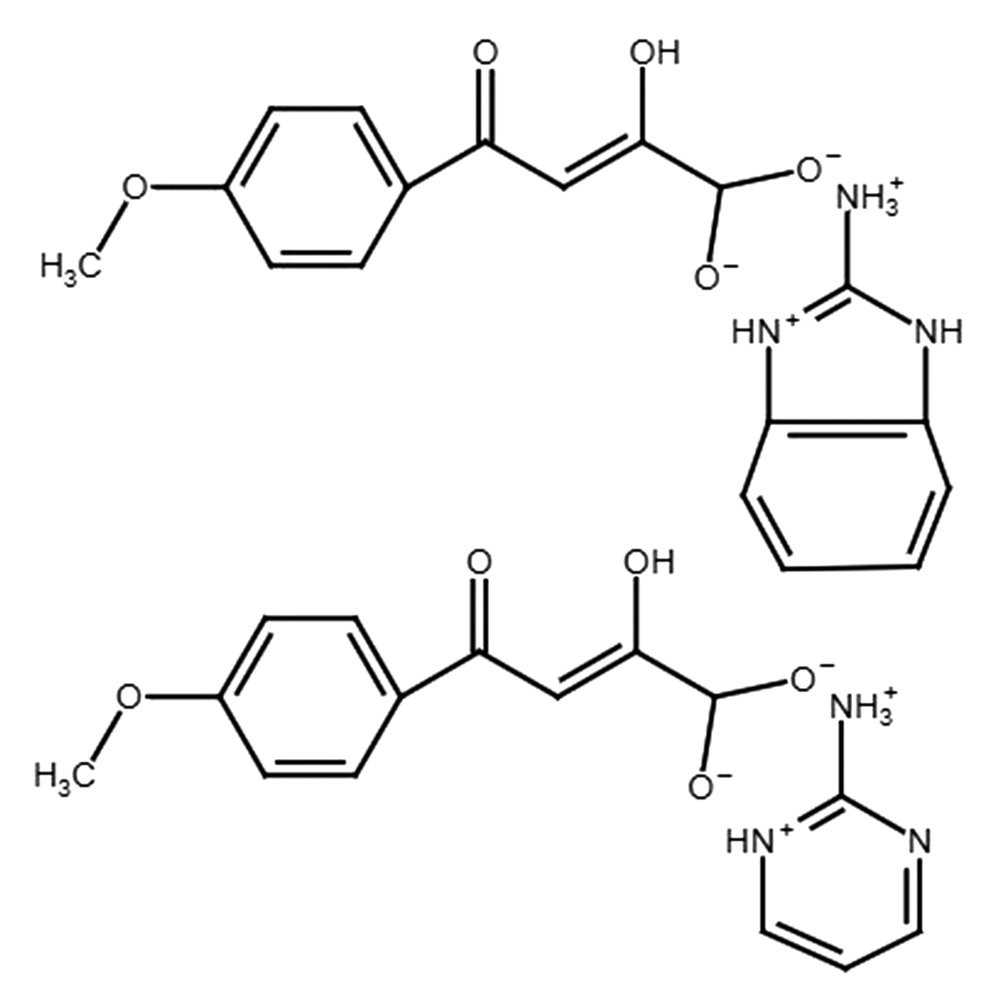 Заключение. Проведено исследование влияния впервые полученных соединений 1a, 1b на поведенческие реакции животных. Осуществлен анализ «структура-активность» с установлением приоритета дальнейшего целенаправленного синтеза солей производных 2,4-диоксобутановых кислот, содержащих фрагмент 2-аминопиримидина. Выявлено соединение с нейропсихотропным профилем активности, рекомендуемое для дальнейшего углубленного изучения.