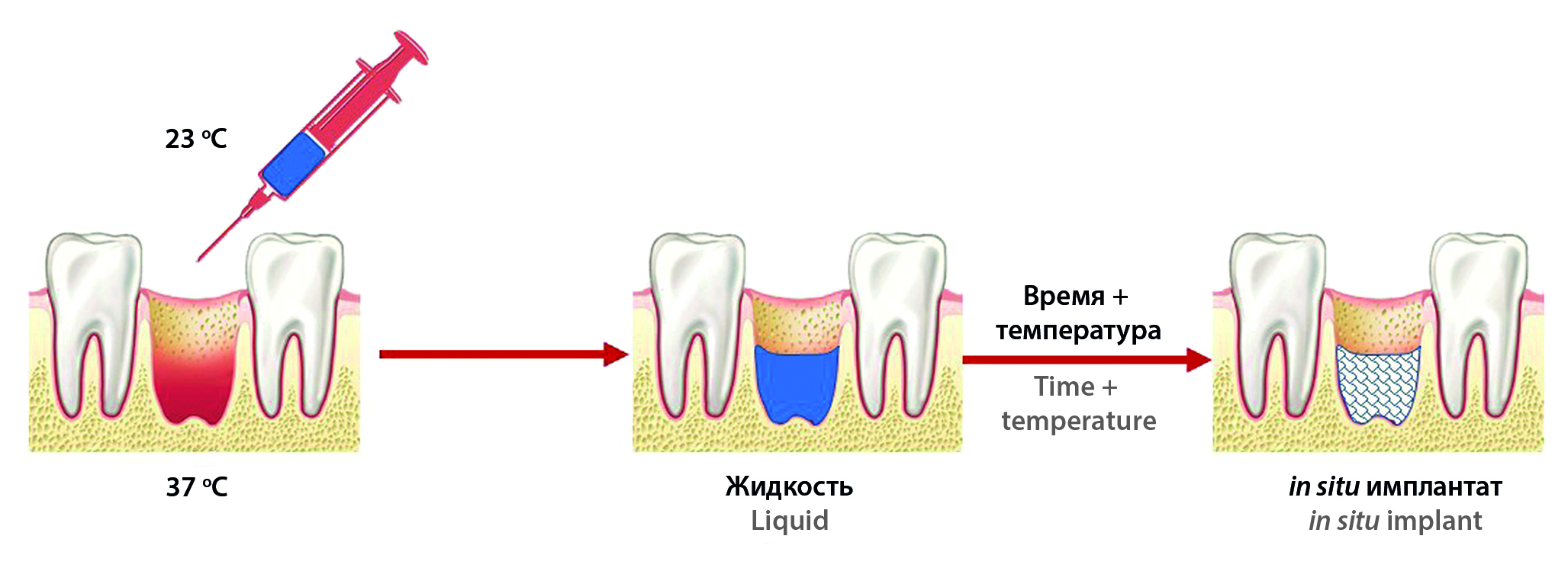 Заключение. По результатам работы сделано заключение о возможности проведения фармацевтической разработки имплантатов in situ для стоматологического применения, а также выделены наиболее перспективные полимеры для осуществления фазового перехода в альвеолярной лунке.