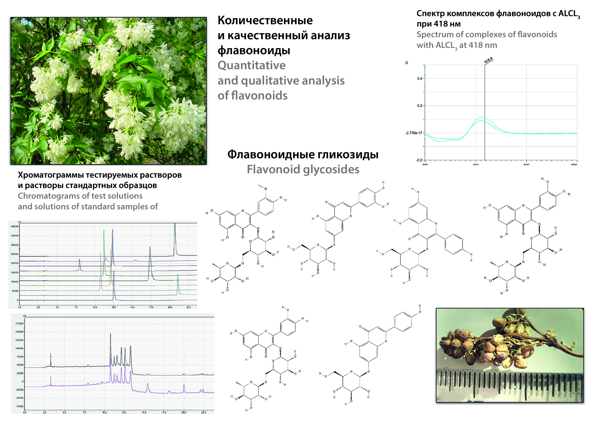 Введение. Поиск новых видов растений, содержащих биологически активные вещества (далее – БАВ), является одной из ведущих задач фармакогнозии как науки. Особенно актуален поиск в растительном сырье гликозидов флавоноидов, так как они обладают противовоспалительным, антиоксидантным, иммуностимулирующим, а также слабым фунгицидным и бактериостатическим действием. Клекачка перистая (лат. Staphylea pinnata L.) – эндемичное растение Кавказа, культивируемое не только в Грузии, но и Российской Федерации на Северном и Северо-Западном Кавказе. В зарубежной литературе существуют исследования антиоксидантной, антипролиферативной и цитотоксической активности экстрактов листьев нескольких видов клекачки, а также ингибирующей активности образования ЦОГ-1, ЦОГ-2 и LTB4. Между тем серьезных русскоязычных научных исследований генеративных органов S. pinnata ни по химическому составу, ни по фармакологическому действию в литературе обнаружено не было. Данная работа является частью комплексного фитохимического исследования S. pinnata. Цель работы – изучение качественного и количественное состава флавоноидов в изучаемом объекте.