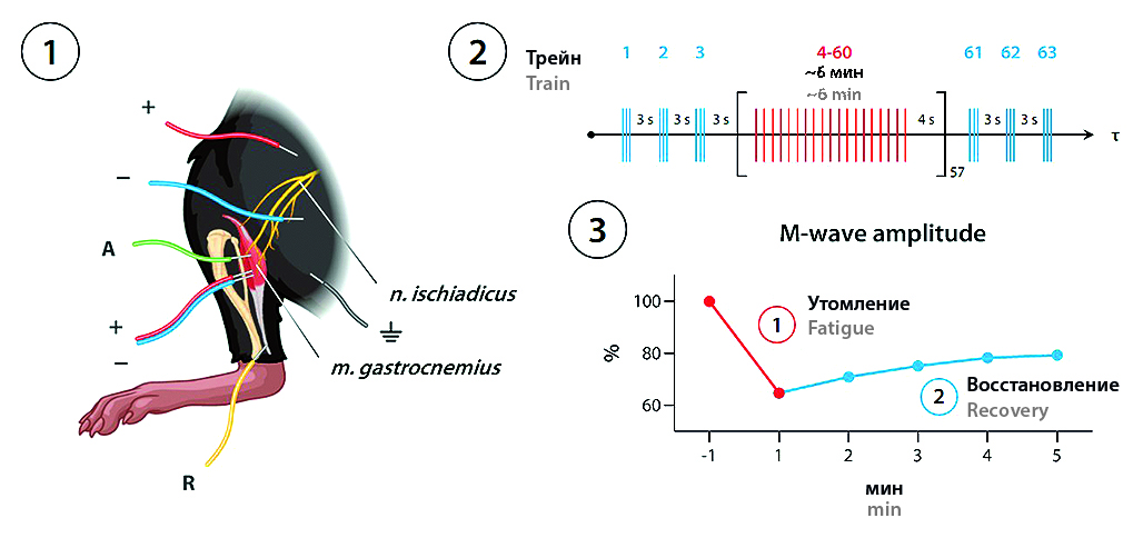 Введение. Сахарный диабет II типа (СД-II) представляет собой хроническое заболевание, характеризующееся инсулинорезистентностью, нарушенной толерантностью к глюкозе и гипергликемией. СД-II является доказанным фактором риска развития как периферических нейропатий, так и нарушений мышечной сократимости и функции. Производное бигуанида метформин, экспериментальное соединение малобен и препараты различных видов женьшеня (Panax spp.) обладают значительным потенциалом для лечения СД-II и его скелетно-мышечных осложнений. В качестве теста для оценки мышечной сократимости и эффективности ее восстановления Gregory et al. был предложен протокол электростимуляционного утомления (ЭСУ), включающий измерение силы хвата перекладины после утомления двуглавой мышцы плеча высокочастотной электростимуляцией с помощью имплантированных электродов.