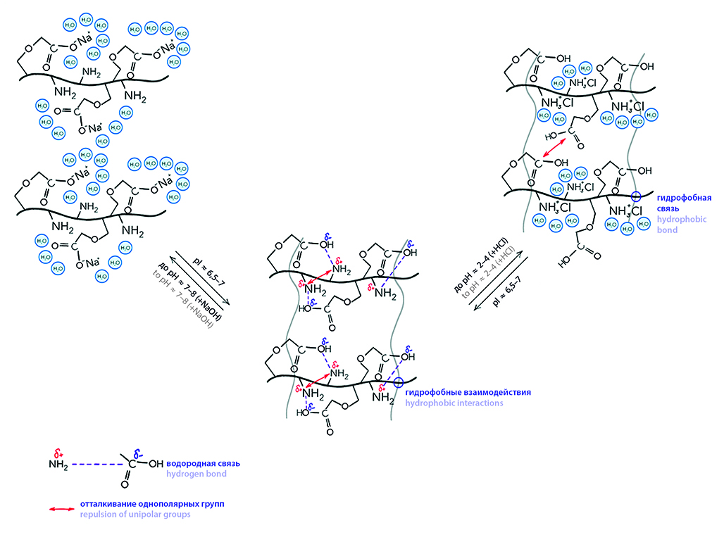 Заключение. В ходе написания обзора были освещены наиболее важные аспекты производства и модификации хитозана, а также продемонстрированы способы придания хитозану pH- или термочувствительных свойств посредством различных стратегий и показаны их преимущества и недостатки. Важно отметить, что не было найдено работ, которые доказывали бы наличие стимулочувствительных свойств у индивидуальных растворов хитозана.