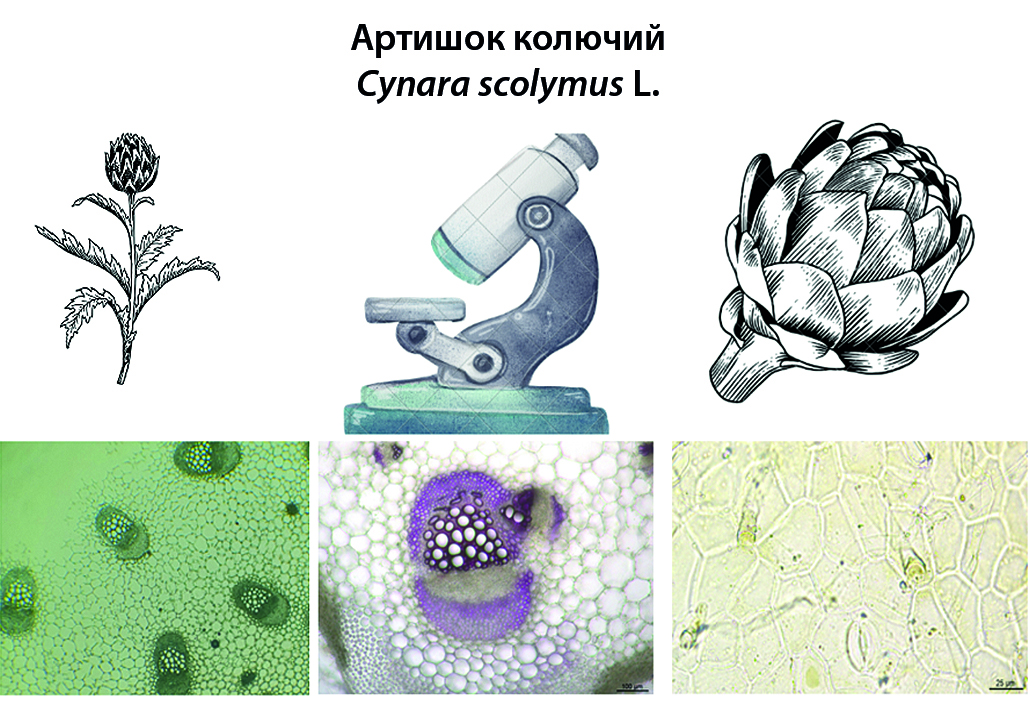 Введение. Артишок колючий – растение из семейства астровых, известное с IV века до н. э. как пищевое и лечебное средство. Это растение ценили древние египтяне, греки и римляне, которые использовали его как в пищу, так и в качестве лекарства. Артишок по-прежнему играет важную роль в питании человека, особенно в Средиземноморском регионе. Cynara scolymus L. демонстрирует широкий спектр фармакологической активности, его листья и цветки проявляют противовоспалительное, антиоксидантное, гепатопротекторное, желчегонное, антимикробное, гиполипидемическое свойства. Это снижает последующий риск развития таких состояний, как рак, диабет и сердечно-сосудистые заболевания. Поэтому данное растение потенциально может быть рассмотрено в качестве кандидата для разработки новых отечественных лекарственных препаратов. Характеристика лекарственного растительного сырья, включая морфолого-анатомические и фитохимические профили, является необходимой информацией для обеспечения качества сырья при разработке лекарств.